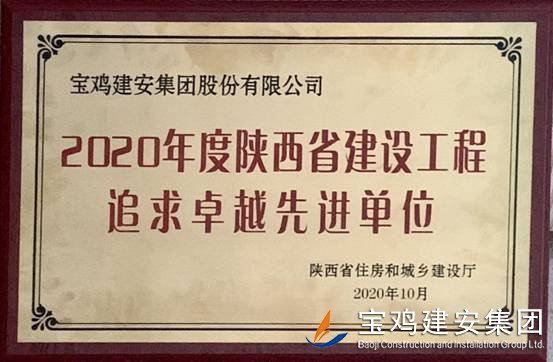 2020年度陜西省建設(shè)工程追求卓越先進(jìn)單位