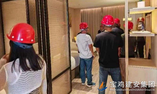 來訪人員首先闡明了此行的目的和意義,我單位相關管理人員針對隴縣海棠酒店項目特征、在建情況、建成后主要建筑功能,向各位嘉賓進行了詳細介紹。隨后在安裝一公司現(xiàn)場管理人員陪同下,對隴縣海棠酒店已成型樣板間,廚房、大堂及地下車庫等工程重點建設部位進行實地參觀考察。我公司管理人員對西建集團、陜西省建筑設計院同仁提出的專業(yè)問題給予了耐心解答,在輕松友好的氣氛中,嘉賓對我公司施工項目質(zhì)量及企業(yè)綜合實力表達了高度認可與肯定。